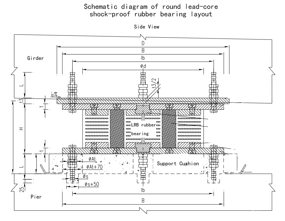 The diameter of round lead rubber bearings range from d420 to d1470. According to the shear modulus (G value), main products include G0.8, G1.0 & G1.2 series.